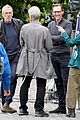 Tom, 43, and Hugh, 65, chatted with a few crew members as they took a break in between filming scenes for season two of The Night Manager on Thursday afternoon (July 4) in London, England.