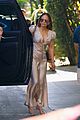 Jennifer was seen holding open the car door as one of her kids stepped out of the vehicle. For her arrival, she was dressed in what appeared to be a the Chloé lace-trimmed silk satin maxi dress in Dust Rose color.